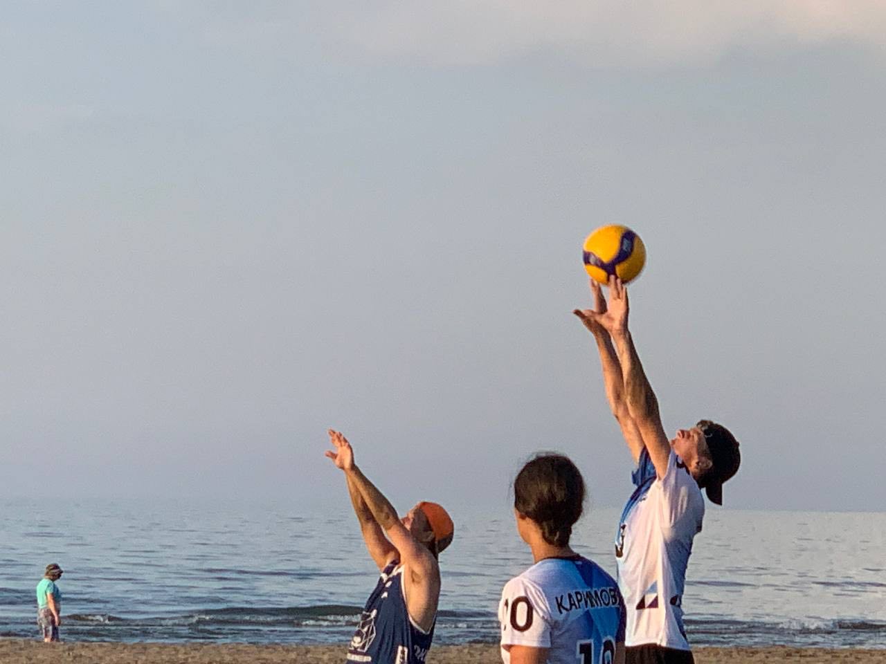 Свободное время, отдых на побережье Каспийского моря, пляжный волейбол .